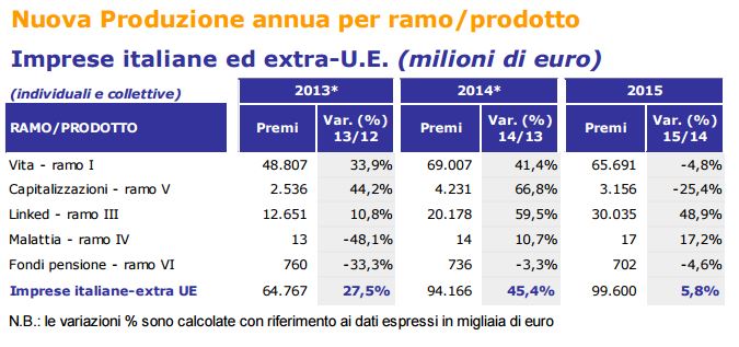 Tornano. Tornano le famigerate polizze vita linked, attenzione! Sebbene mascherate, sono tornate le famigerate Linked, vendute come polizze Vita. Sono denominate “Polizze Vita Multiramo” Premi raccolti da Polizze Multiramo: oltre 6 miliardi nel 2013, circa 12 nel 2014, 16 nel 2015, con previsione di circa 20 miliardi nel 2016. La tabella Ania mostra l’impennata dei premi imputabili al Ramo III (Linked): in tre anni (2013-2015) sono aumentati del 137,4 %